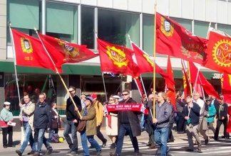 ![]() Kirvesmiehiehiä kannustetaan osallistumaan Työväen vapputapahtumiin ja marsseihin. Hakaniemen marssi käynistyy klo 11.00 |