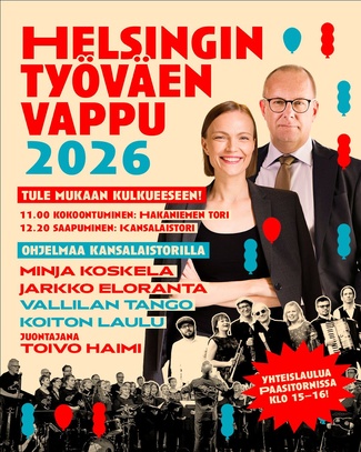 Helsingin työväen vappukulkue ja torijuhla järjestetään perinteiseen tapaan vappupäivänä 1. toukokuuta. Vuonna 2026 päivä osuu perjantaille!